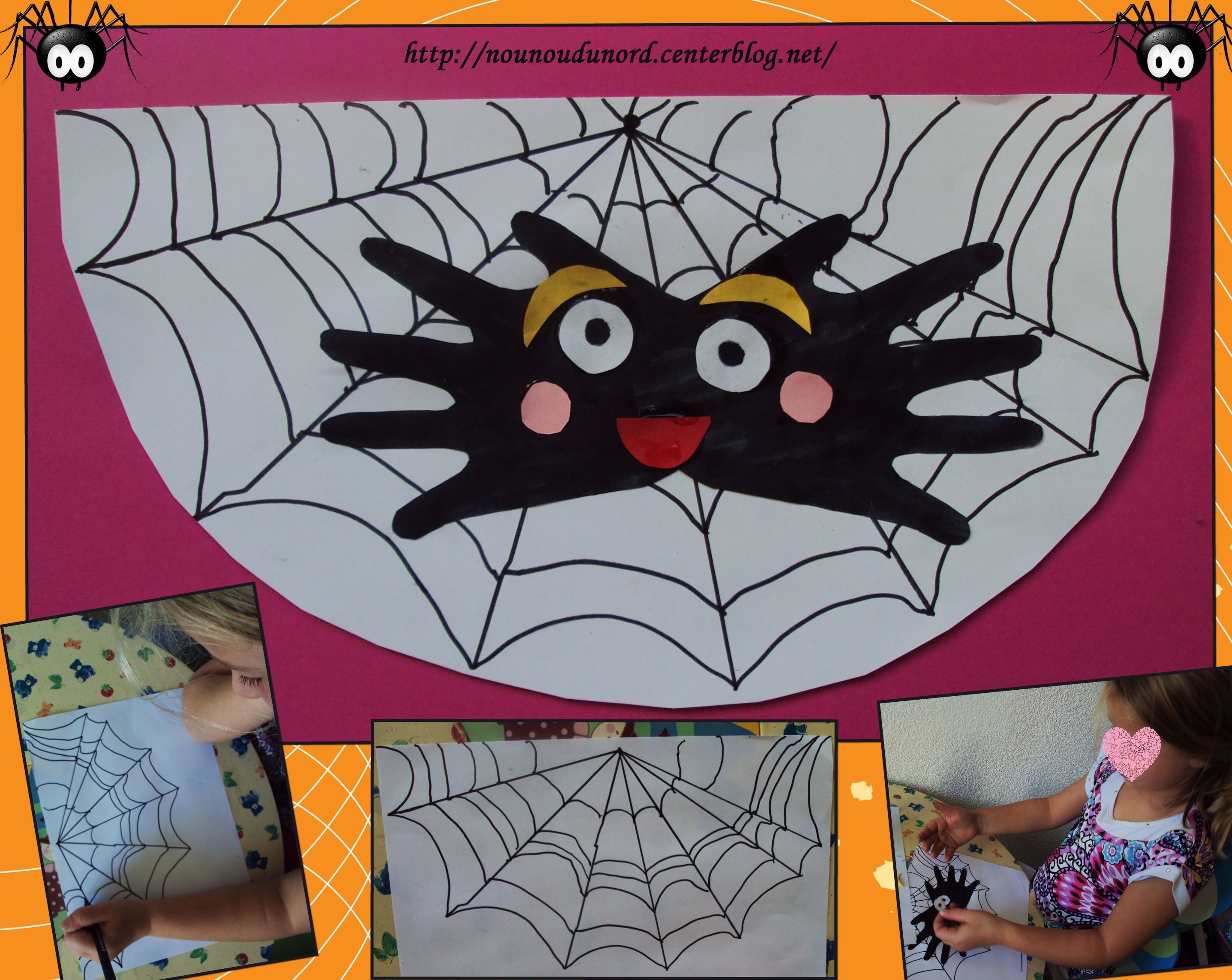 belle araignée et si tu veux faire une chausouris tu prend une barquette en plastique noir et tu reproduis le dessin dessus et tu découpes et avec tu fait ds yeux blanc avec gommet l avantage c est que tu peux les garder pour l année d après pareil pour fantome dans barquette blanche et orange pour citrouille